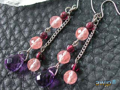 ☆紫水晶(アメシスト.滴形)とチェリークォーツ.ガーネットのピアス